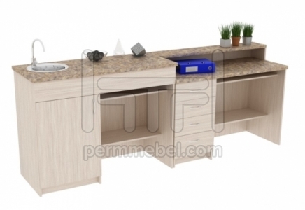 Материалы: столешница постформинг 26 мм., корпус — ЛДСП 16 мм., кромка ПВХ 2/0,4 мм.